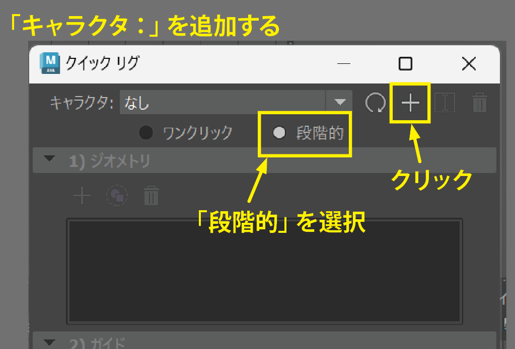 クイックリグ パネルで、右上の「+」をクリックし、さらに「段階的」を選択してください。