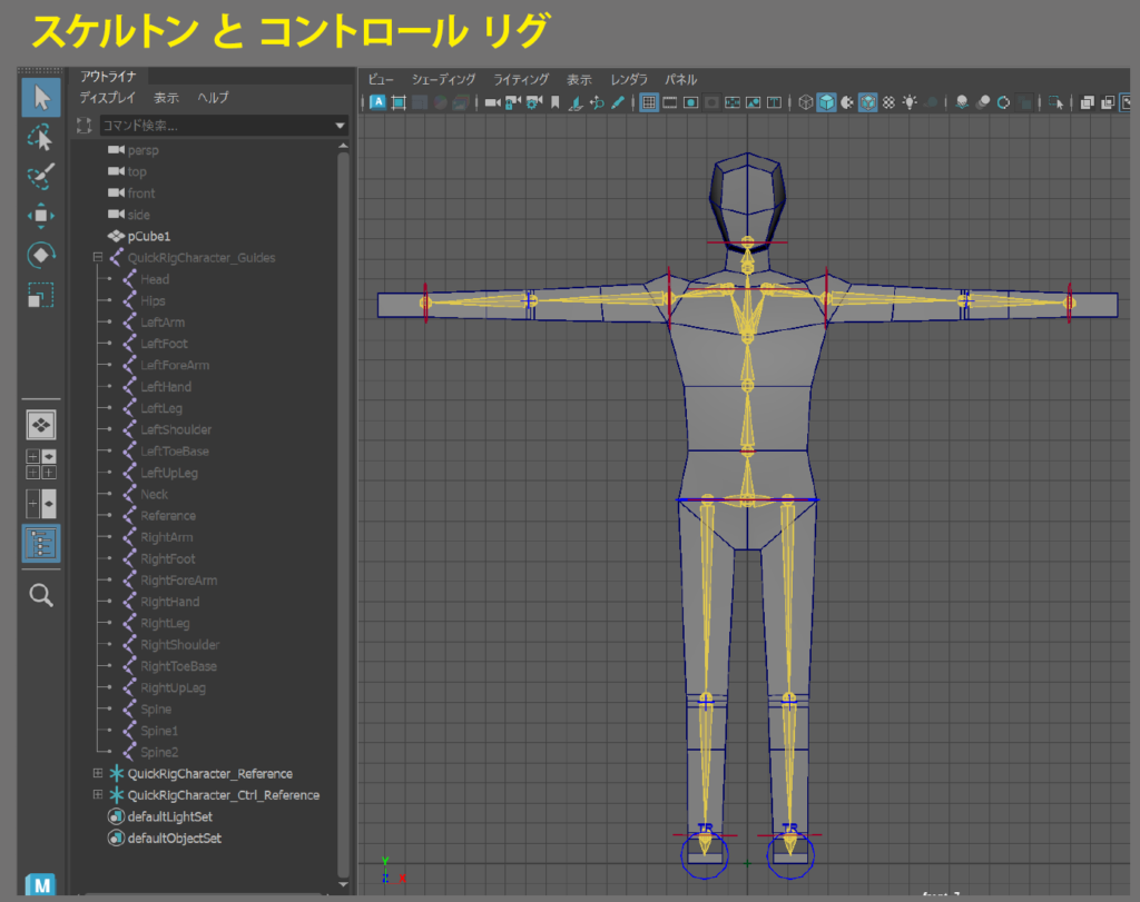 クイックリグを使うと、ジョイント ツールで作成する場合に比べて簡単な操作でリギングを済ますことができます。