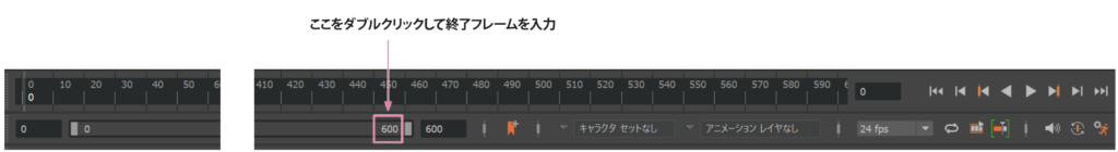 再生時間(フレーム数)を手っ取り早く設定するには、図の数値をダブルクリックして入力します。